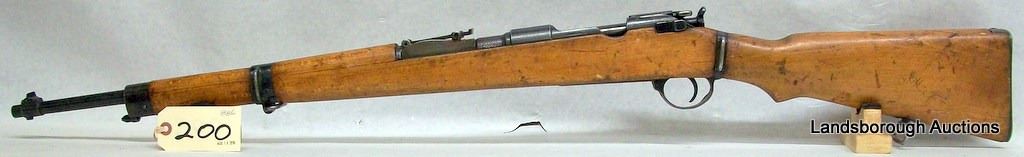 NON-RESTRICTED, BOLT ACTION, 8MM MAUSER, 24" BARREL, SN B26896. WOOD HAS DENTS AND NUMEROUS MARKS, BLUING IS GREY AND WORN, BORE GOOD.
