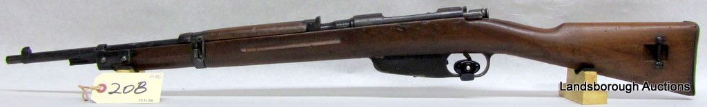 NON-RESTRICTED, BOLT ACTION, 6.5 X 52 ITALIAN, 21" BARREL, SN V3670. WOOD HAS NUMEROUS DENTS, BLUING IS GREY AND WORN, BORE GOOD.