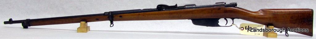 NON RESTRICTED BOLT ACTION 6.5X52ITALIAN, 780MM BARREL, S/N LK 3663. WOOD IS SCRATCHED AND REPAIRS HAVE BEEN MADE TO THE GUN, BLUING IS RUSTED, BORE IS STAINED WITH GOOD RIFLING. NO MAGAZINE