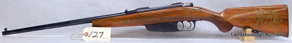 NON-RESTRICTED, BOLT ACTION, 6.5MM, 20" BARREL, SN NONE. WOOD HAS HOME BRASS INLAY DESIGNS, BLUING IS PITTED, BORE GOOD. DOUBLE SET TRIGGER GROUP.