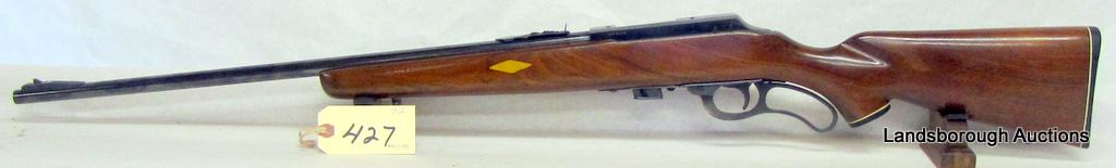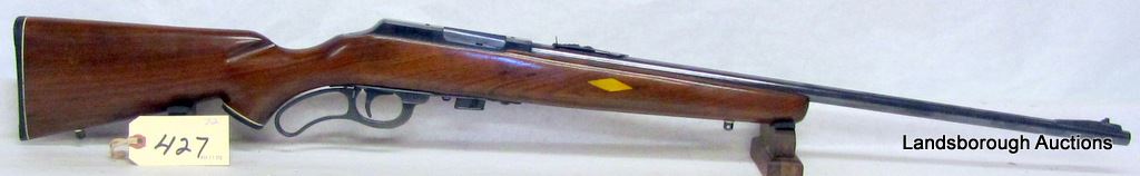 NON-RESTRICTED, LEVER ACTION, 22 CAL, 24" BARREL, SN 5615829. WOOD REFINISHED, MARKS ON BARREL AND SOME PITTING ON LEVER, BORE VERY GOOD.