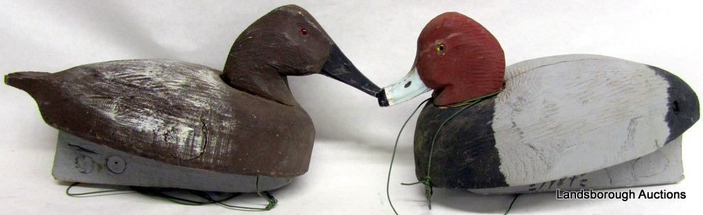 CARVED WOODEN DUCKS SIGNED BY TOM MARTINDALE 1984.