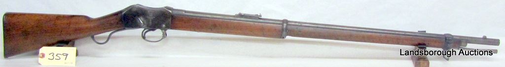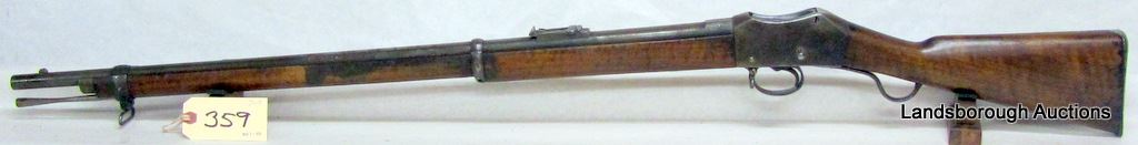 ANTIQUE, SINGLE SHOT, 577/ 450 MARTINI HENRY, 33" BARREL, SN NONE. WOOD HAS LOTS OF CHIPS AND DENTS, BLUING IS BROWN, BORE DARK WITH GOOD RIFLING. DATED 1882.