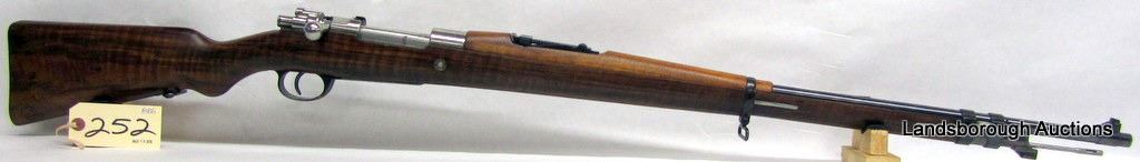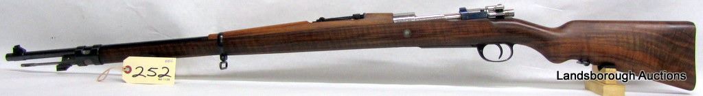 NON-RESTRICTED, BOLT ACTION, 8MM MAUSER, 29" BARREL, SN N8409. TIGER STRIPE WOOD HAS ONE SCRATCH, BLUING AND BORE VERY GOOD.