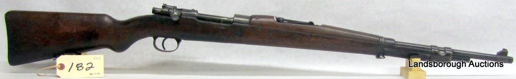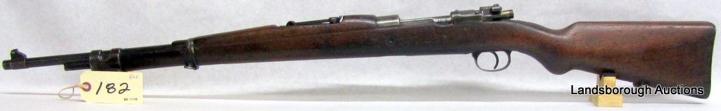 NON-RESTRICTED, BOLT ACTION, 7MM MAUSER, 24" BARREL, SN 22325. WOOD HAS NUMEROUS DENTS AND MARKS, BLUING IS GREY, BORE DARK RILFING EVIDENT.