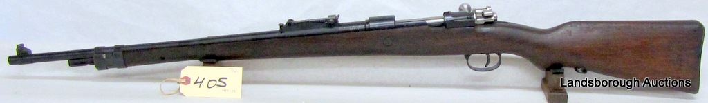 NON-RESTRICTED, BOLT ACTION, 8MM MAUSER, 24" BARREL, SN M2008. TOP WOOD MISSING, CRACK UNDER RECEIVER, BLUING SCRATCHED, BORE VERY GOOD.
