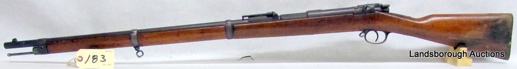 NON-RESTRICTED, BOLT ACTION, 43 MAUSER, 31" BARREL, SN 7642. WOOD HAS NUMEROUS SCRATCHES AND MARKS, BLUING IS BROWN, BORE STAINED WITH PROMINENT RIFLING.