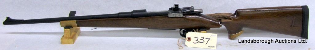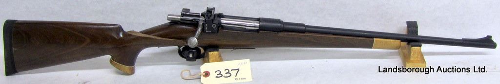 NON-RESTRICTED, BOLT ACTION, 7MM MAUSER, 17 1/2" BARREL, SN 8247. WOOD BROKEN AT WRIST, BLUING HAS BEEN PAINTED, BORE HAS SOME STAINING. COMES WITH WILLIAMS REAR PEEP.