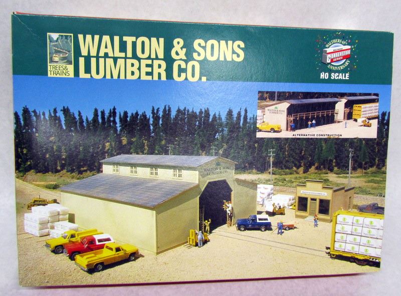 ALL 3 ARE HO SCALE BUILDINGS. WALTON & SONS LUMBER CO. GOLDENFLAME FUEL CO. RAILROAD YMCA BUNKHOUSE.