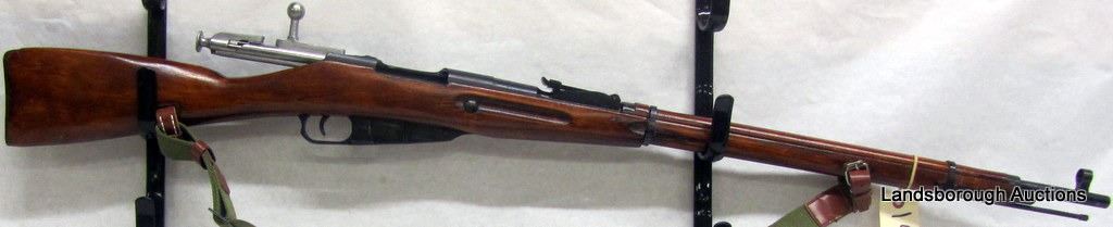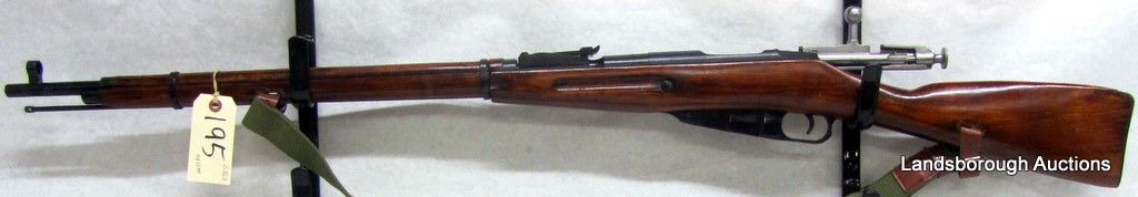 NON RESTRICTED BOLT ACTION 7.62X54R, 725MM BARREL, S/N 7919. WOOD IS SCRATCHED AND APPEARS TO HAVE BEEN EXPERTLY REPAIRED IN THE BUTT END. BLUING IS WORN AND SCRATCHED, BORE IS PITTED. ACTION AND BUTT PLATE ALL HAVE MATCHING S/N. COMES WITH NON MATCHING BAYONETTE AND CLEANING KIT