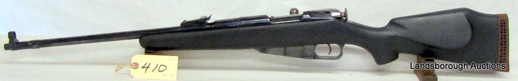 NON-RESTRICTED, BOLT ACTION, 7.62 X 54R, 21" BARREL, SN MK04318. SPORTER WOOD STOCK PAINTED BLACK, BLUING REFINISHED, BORE GOOD.