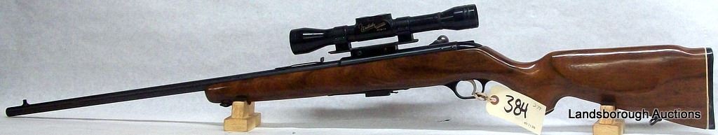 NON RESTRICTED BOLT ACTION .22MAG WMR, AC-KRO-GRUV 620MM BARREL, S/N 973714. WOOD IS VERY GOOD, BORE IS GOOD WITH SLIGHT PITTING IN SPOTS, BORE IS EXCELLENT. SCOPE IS A WEATHERBY VARIABLE 2X-7X