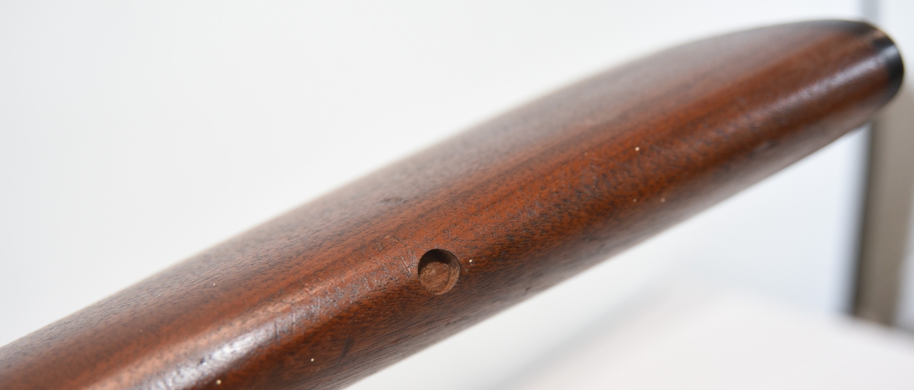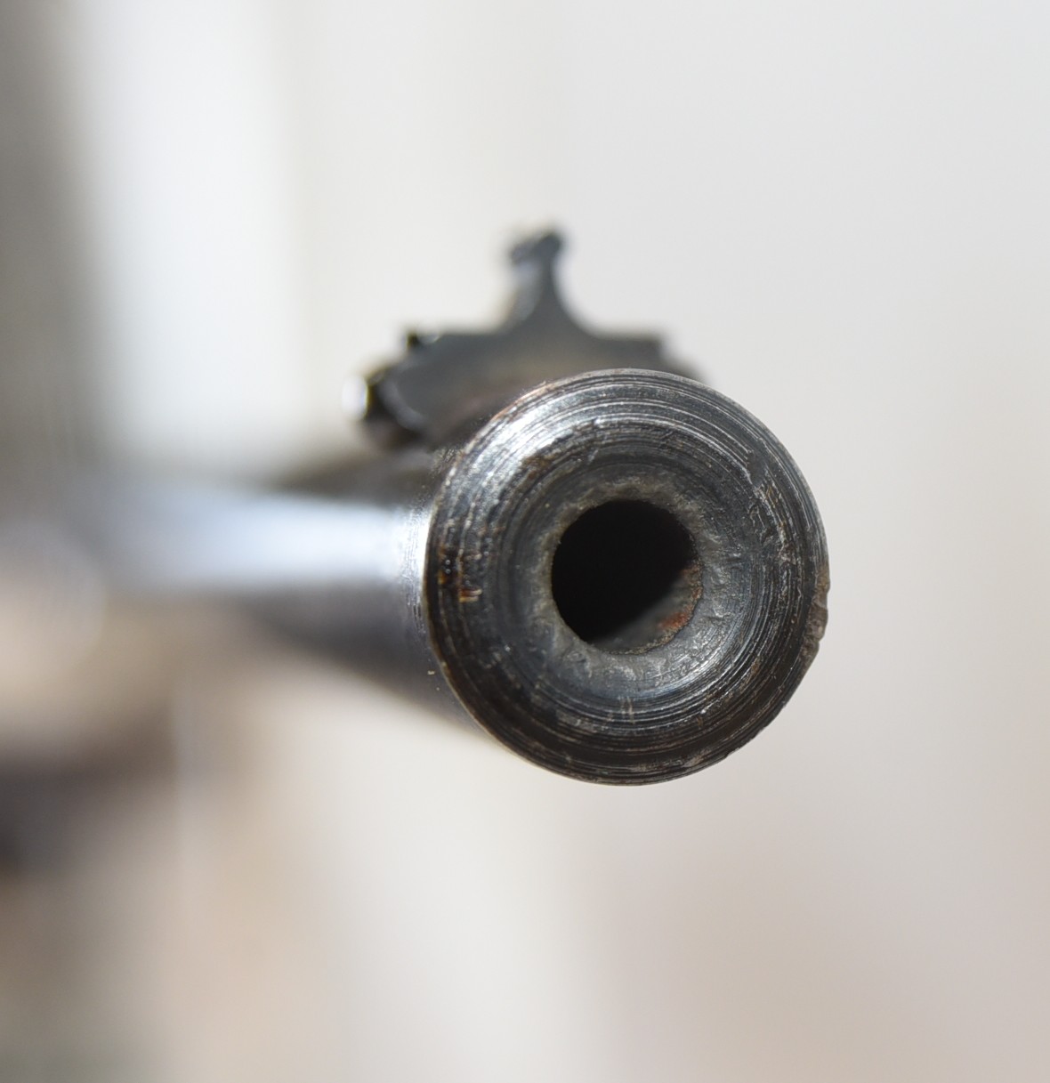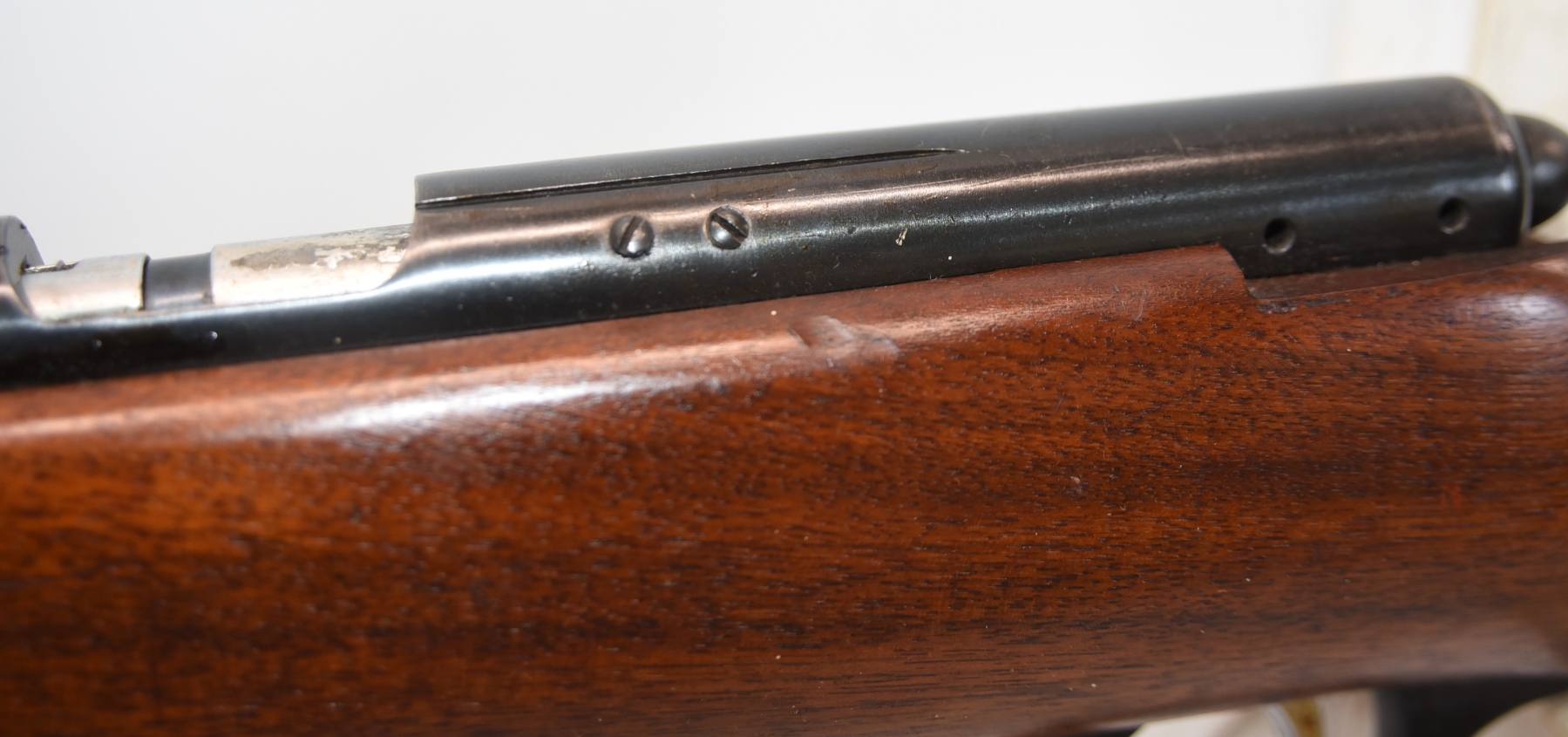 Metal shows some varnish spots on barrel and receiver, light scratches, scuffs; condition is very good.