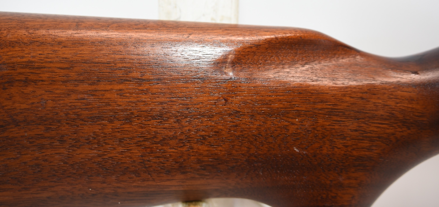 Wood stock shows Bullseye is missing from the stock, there are scratches, scuffs, dents; condition is very good.