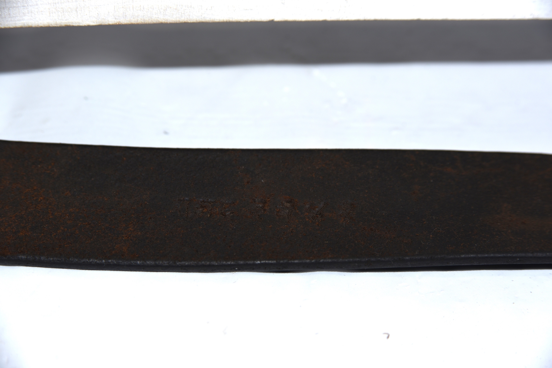 Metal finish shows scratches, scuffs, patina, rust, light pitting in areas; condition is fair for age.