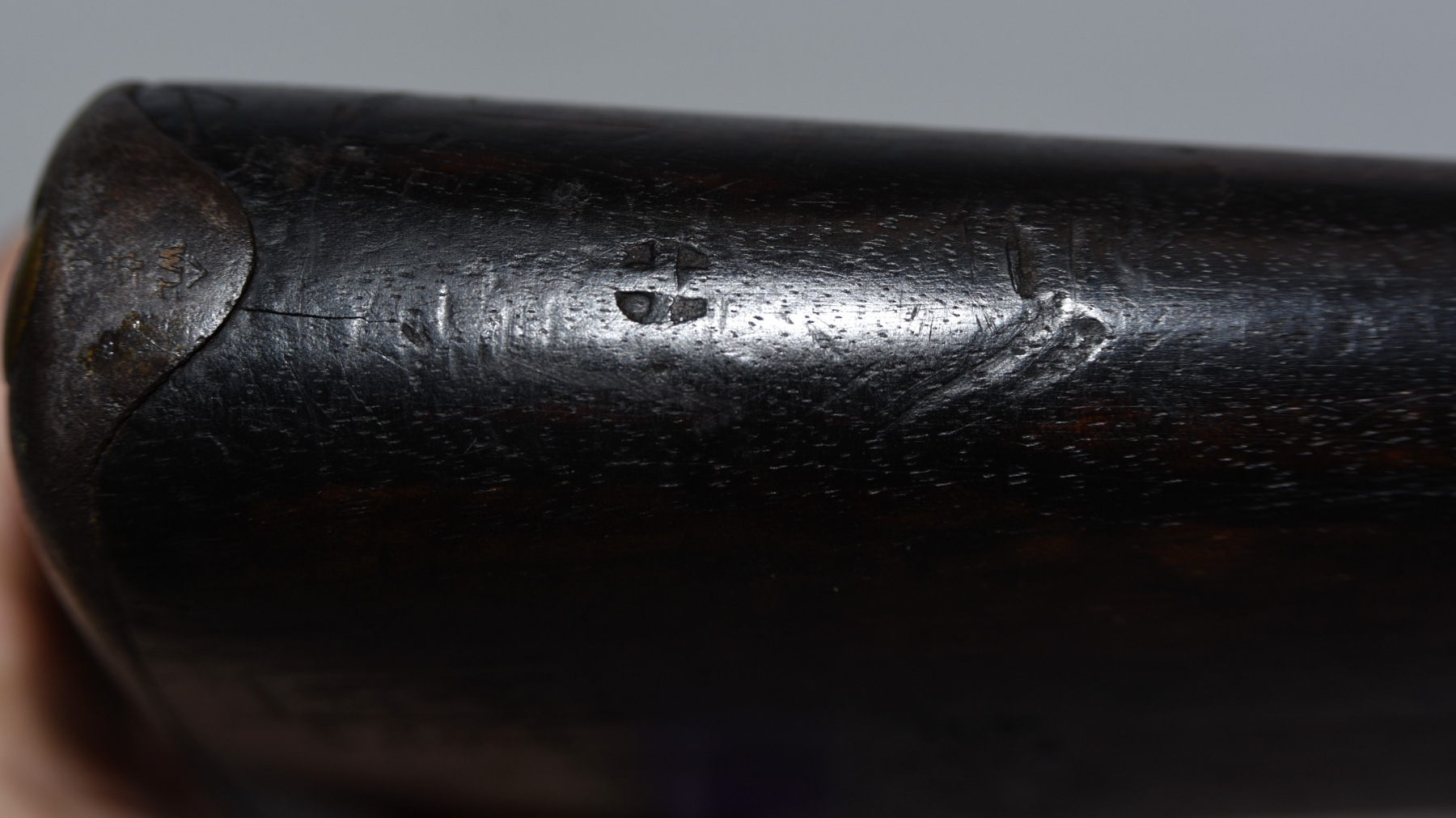 Wood stock shows markings, there are scratches & scuff, scratches, dents, finish wear; condition is fair for age.
