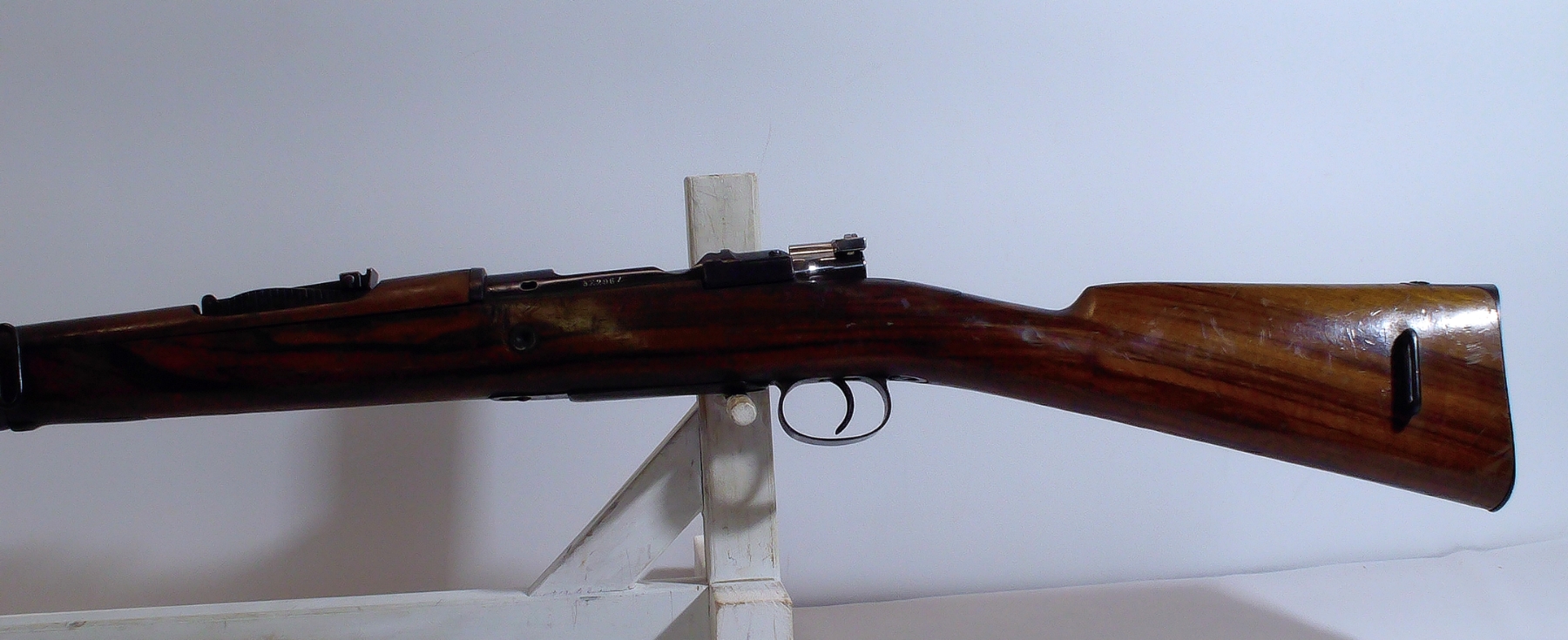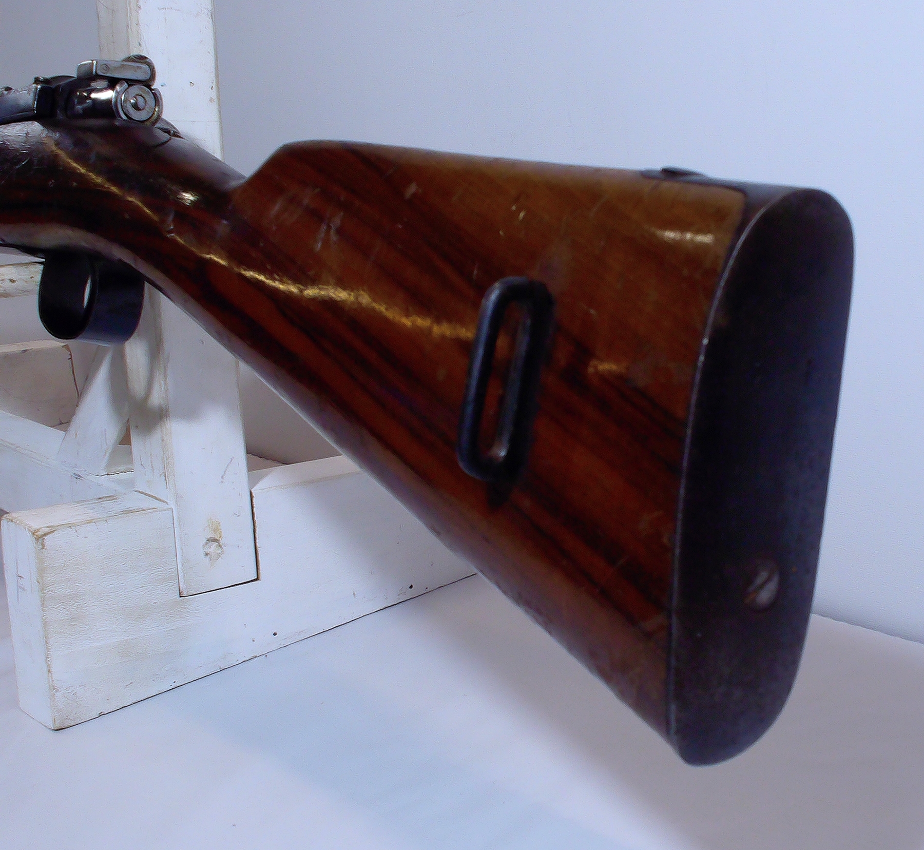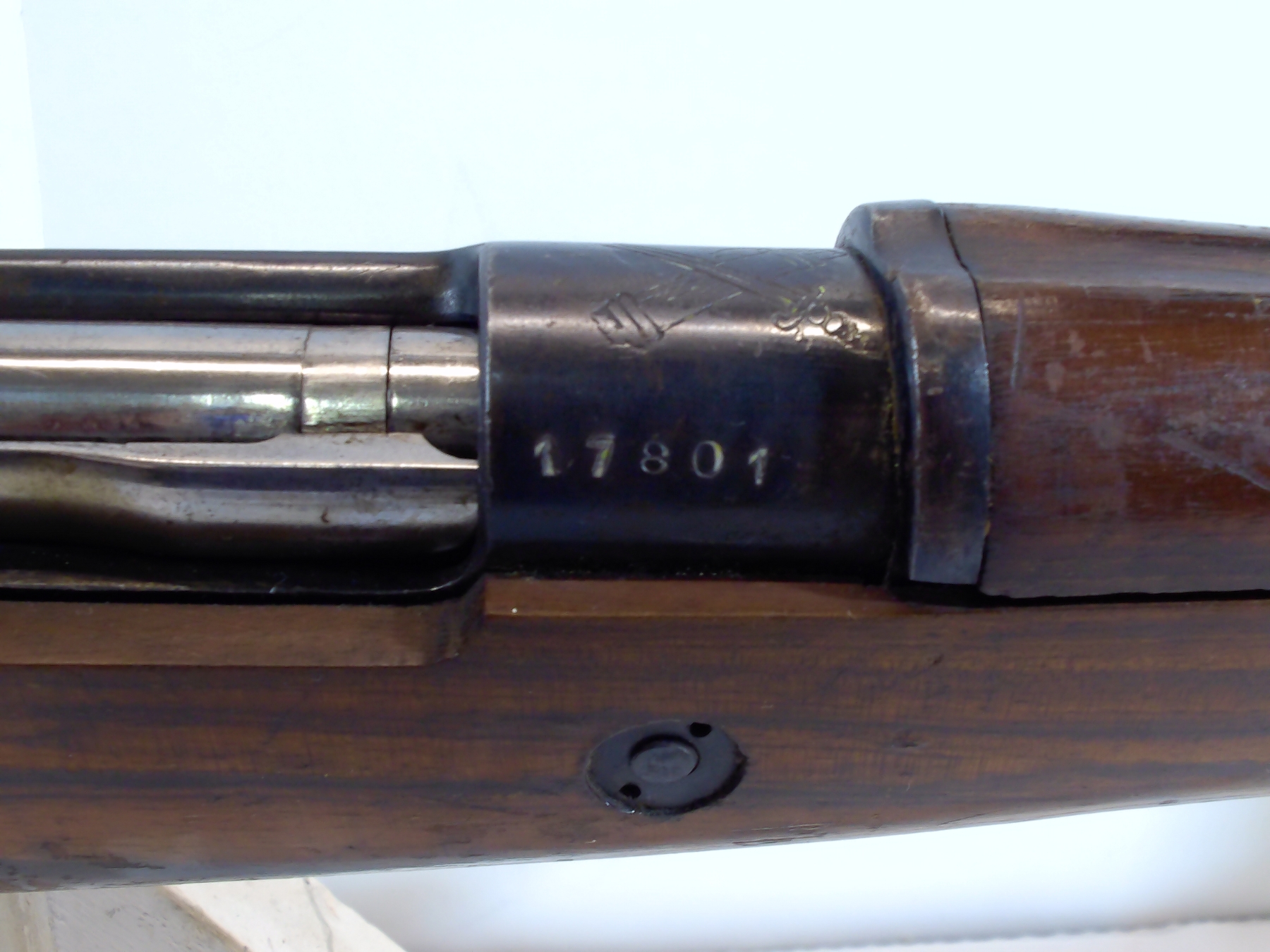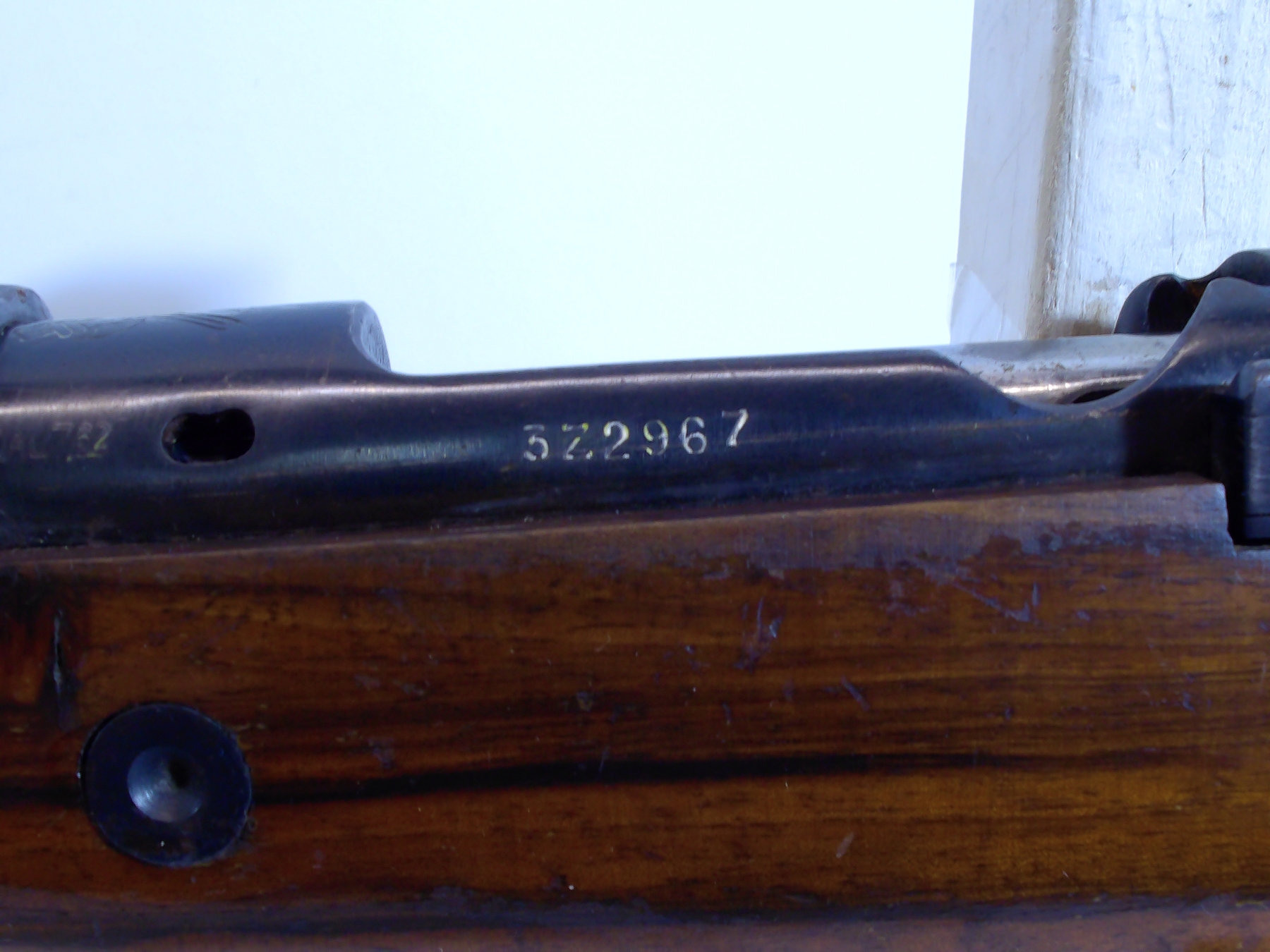 Wood stock shows scratches, scuffs, dents, finish wear; condition is good for age.