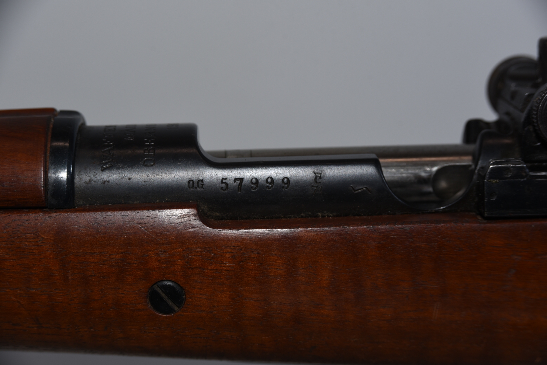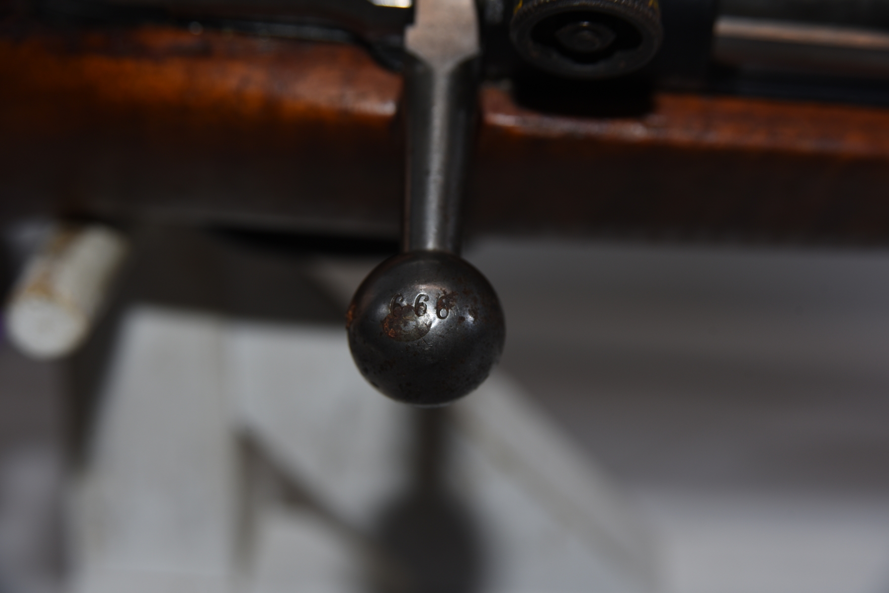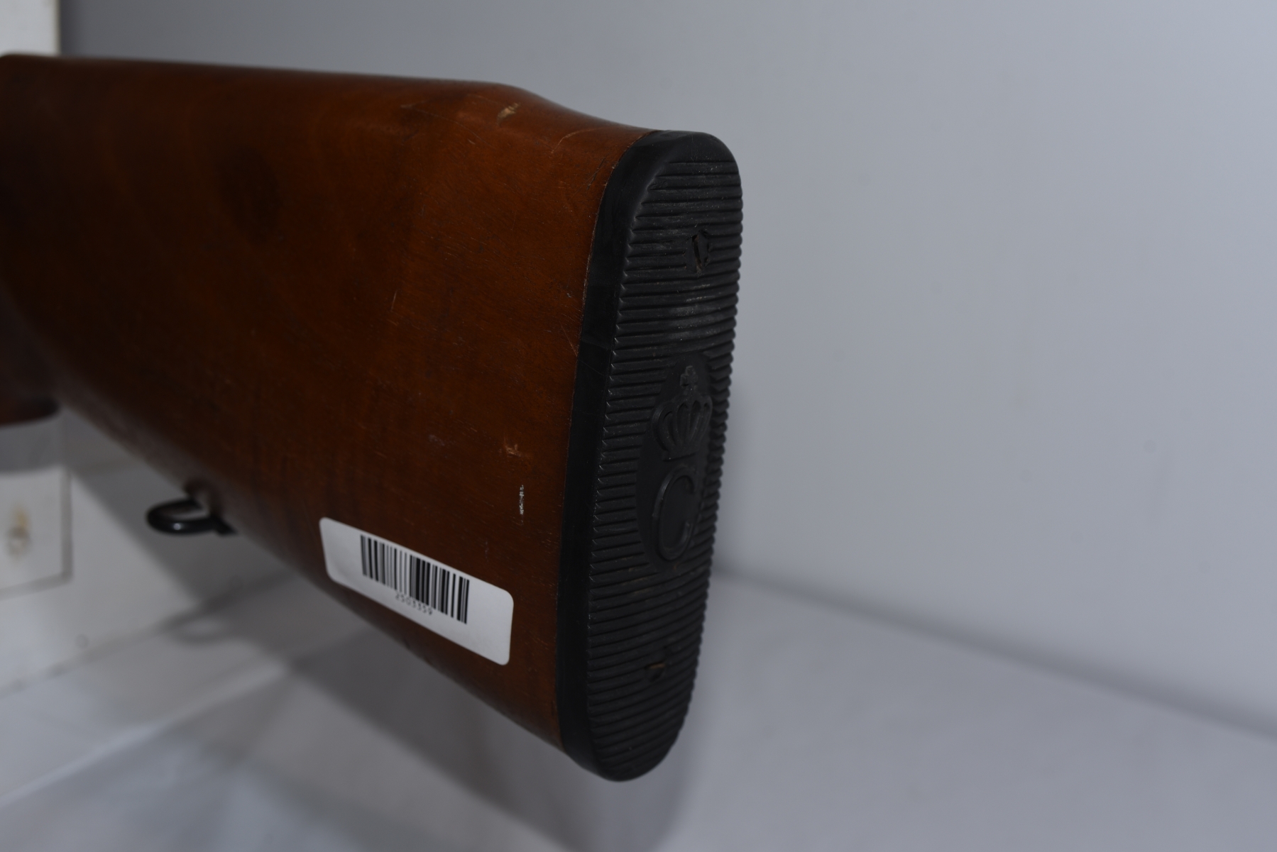 Wood stock shows scratches, scuffs, some light dents; condition is good.