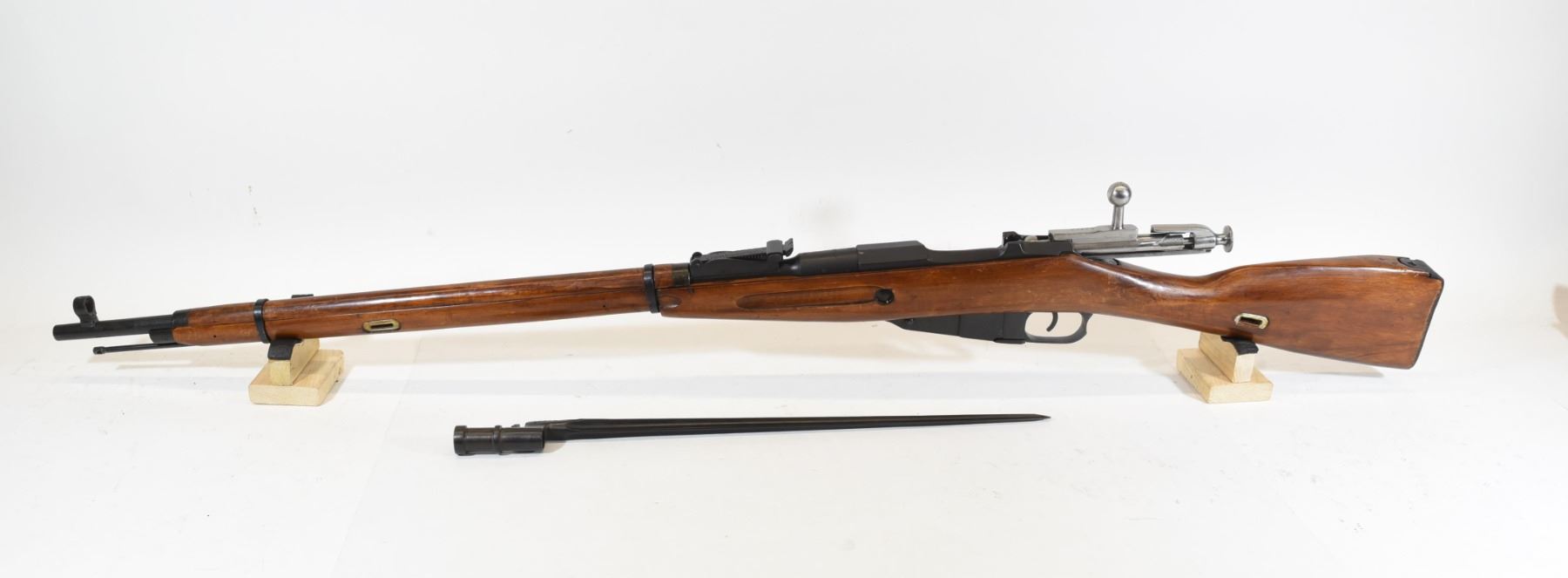Non-restricted, 7.62 x 54R, bolt action, 28" barrel. SN 83405. Wood stock is good. Bore is good. Bluing is good. Comes with bayonet. Has a hex receiver.
