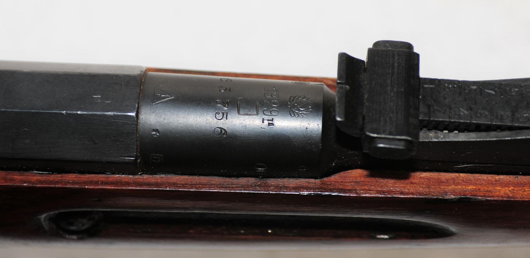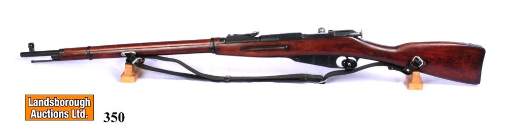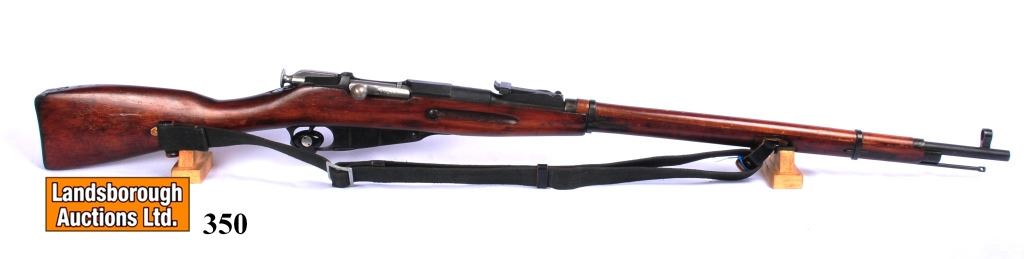 Non-Restricted, bolt action, 7.62 x 54R, 29" barrel, SN 65756. Wood original with some dents and marks, bluing has some marks, bore has corrosion. Comes with sling, ammo pouch and oil can.