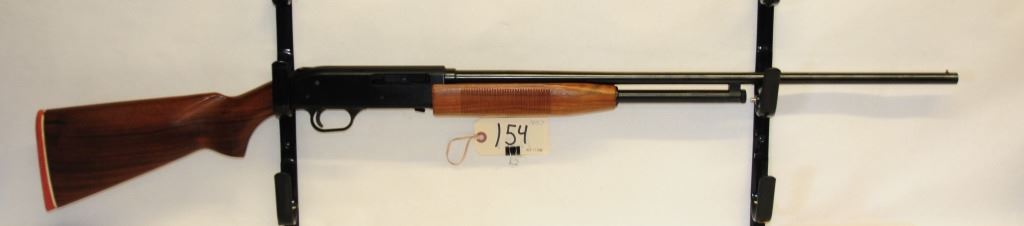 Non-restricted, pump action. 410 ga. 3", 26" full choke barrel, SN none, wood is very good, bluing is very good, bore is good
