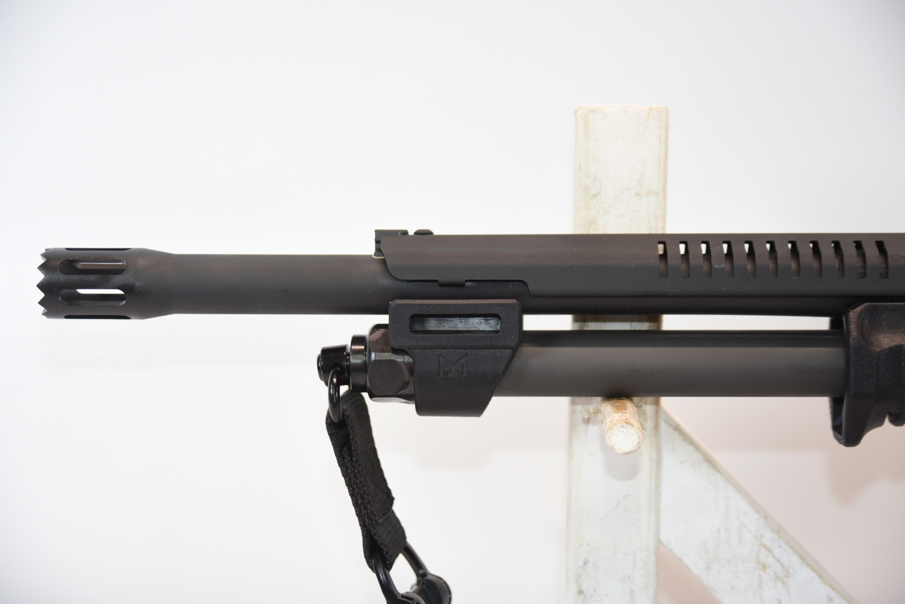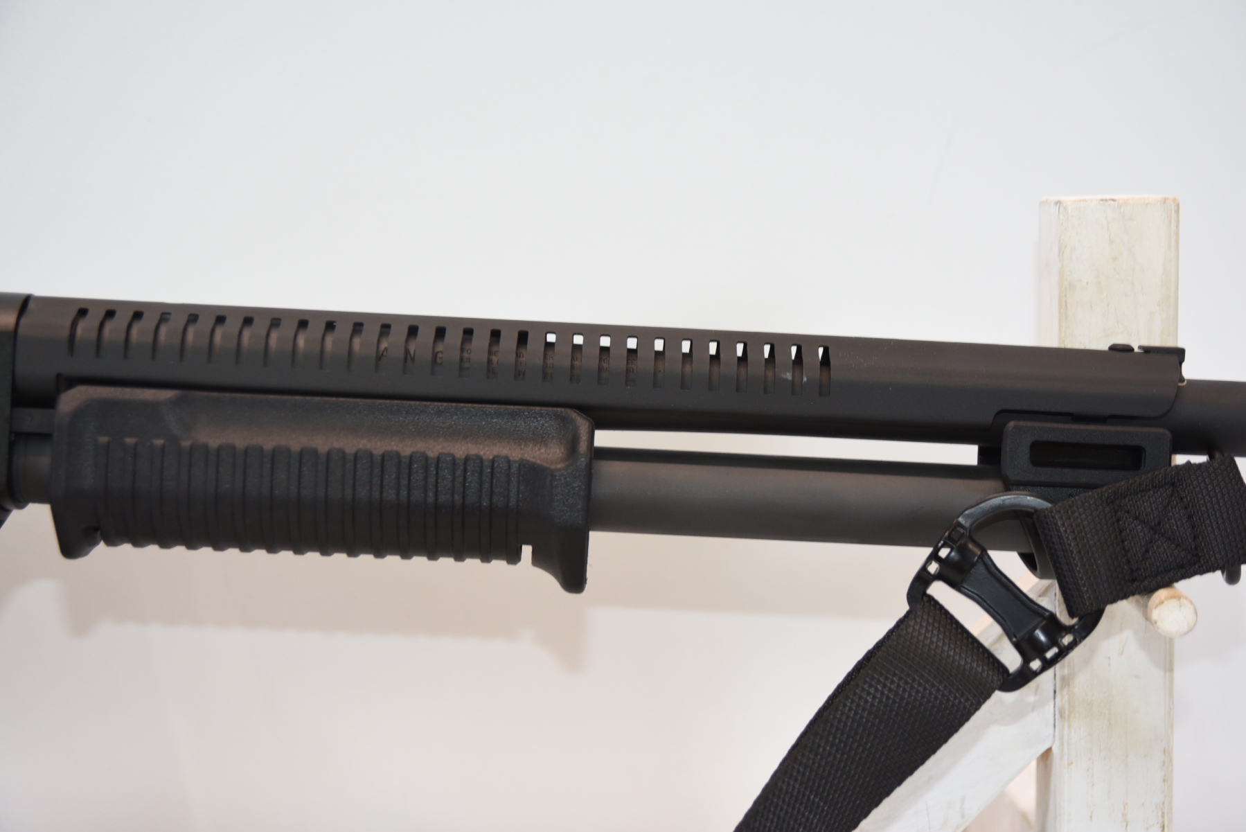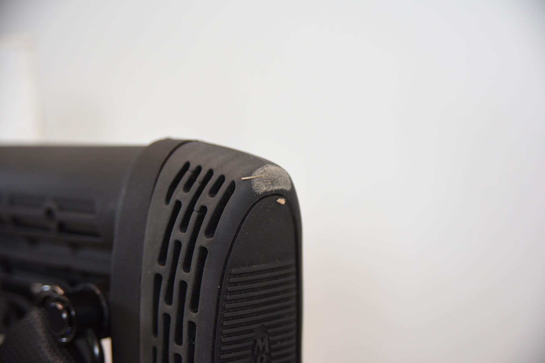 The black stock is in like new condition. The matte receiver is in like new condition, does have a small mark on the left hand side by the action. The black synthetic forearm is in like new condition. The matte bluing is also in like new condition. Has a lever-style detachable magazine box. Has a nylon black sling attached. The bore is shiny and smooth, in excellent condition.