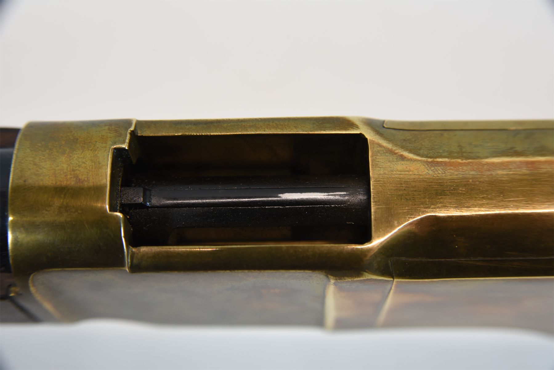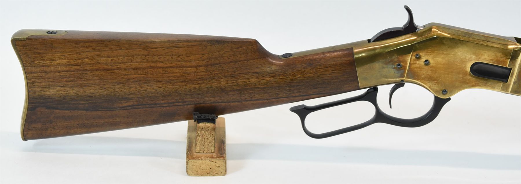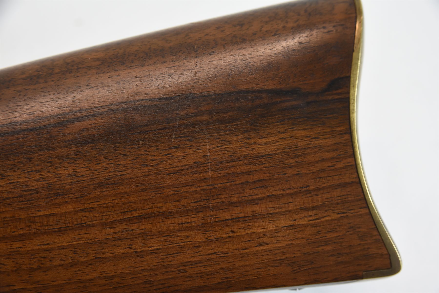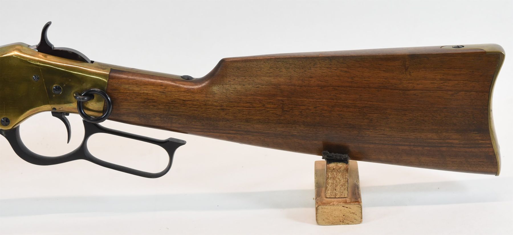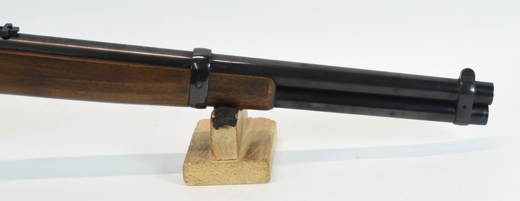 The wood has just a few very light marks. The bluing is very good. The brass receiver has a couple of very light scratches. The bore is excellent.