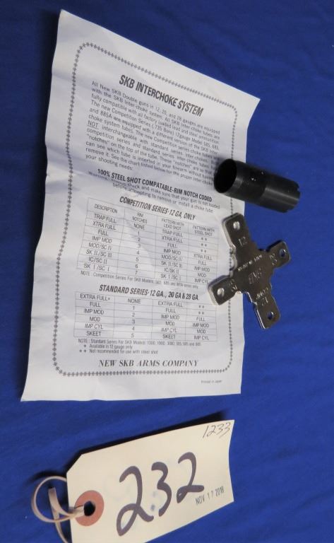 Non-restricted, multi barrel, 12 ga. 3", 32" barrels, SN AS06687, wood is very good, bluing is very good, top bore is excellent bottom bore has some minor normal scoring, comes with three choke tubes and wrench