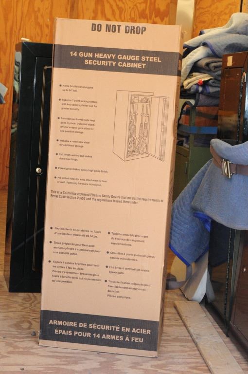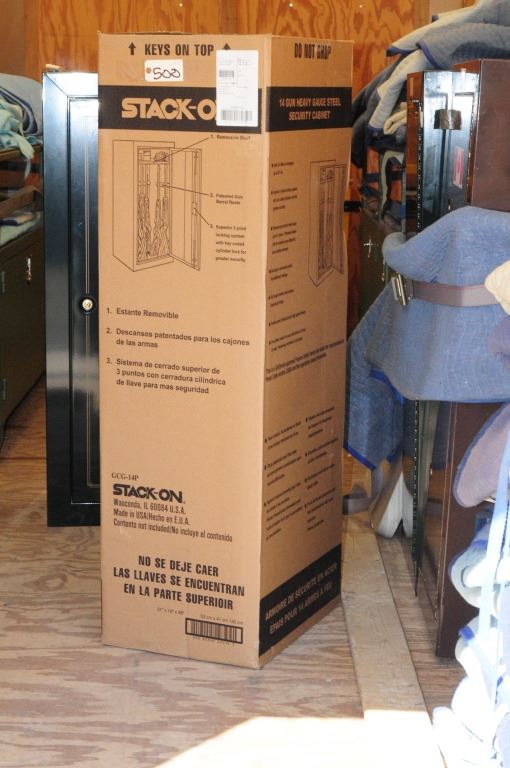 New Stack On Gun Locker model GCG-14P, made from heavy gauge steel locker holds 14 guns, new in unopened box. NO SHIPPING ON THIS ITEM MUST PICK UP