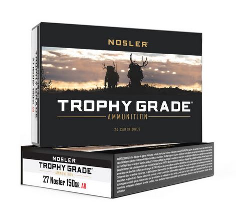 Nosler Trophy Grade 27 Nosler 150 Grain AccuBond (20 Rounds) Sku 61026 Nosler Trophy Grade ammunition is high quality, production-run ammunition manufactured to strict tolerances and inspected as it is hand-packaged. Trophy Grade features Nosler Custom brass and the dependable, high performing bullets you know and trust. This ammunition is new production,…