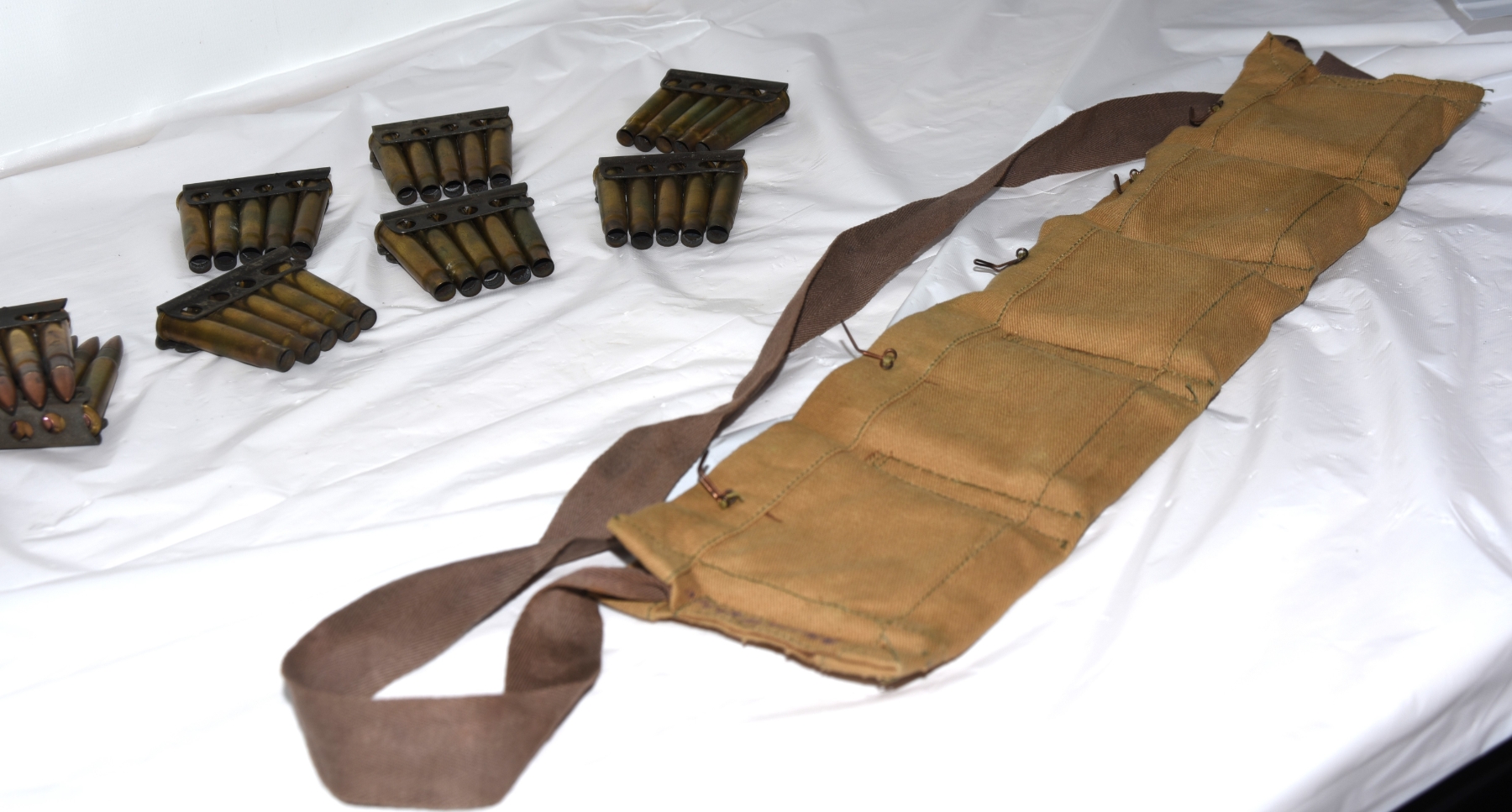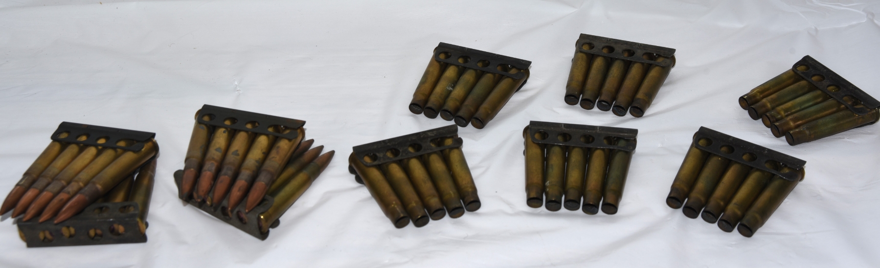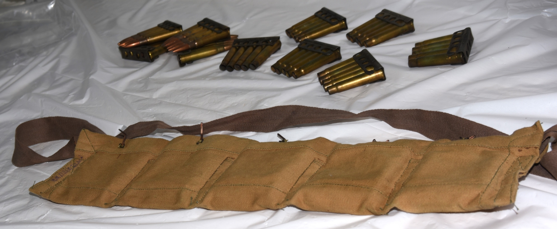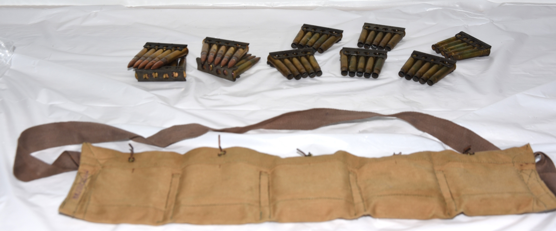 Original Military Bandolier complete with 50 Rounds of 303 Br. FMJ in 5 Rd Stripper Clips