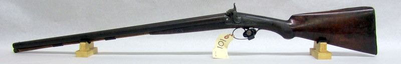NON-RESTRICTED, MUZZLE-LOADER PERCUSSION CAP SHOTGUN, 12 GAUGE, 28 INCH BARRELS, NO SN. TRIGGERS AND HAMMERS APPEAR FUNCTIONAL, BARRELS HAVE RUST INSIDE BLUEING IS GONE, WITH SURFACE RUST, WOOD HAS SCRATCHES.