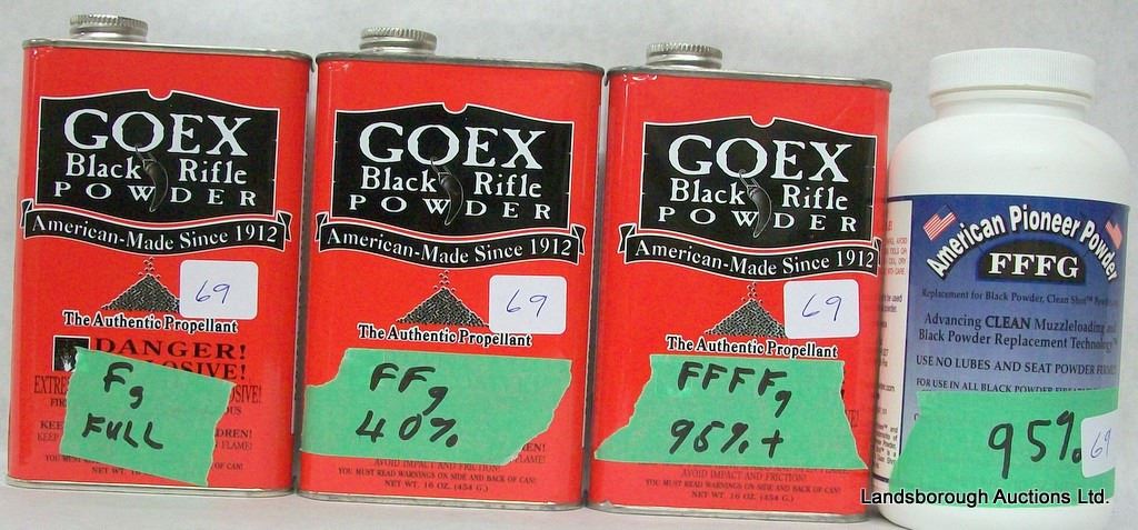 MUST PICK UP, WILL NOT SHIP. GOEX .95 LB FFFFg, GOEX .40 LB FFg, GOEX 1 LB Fg, AMERICAN PIONEER .95 LB FFFg.