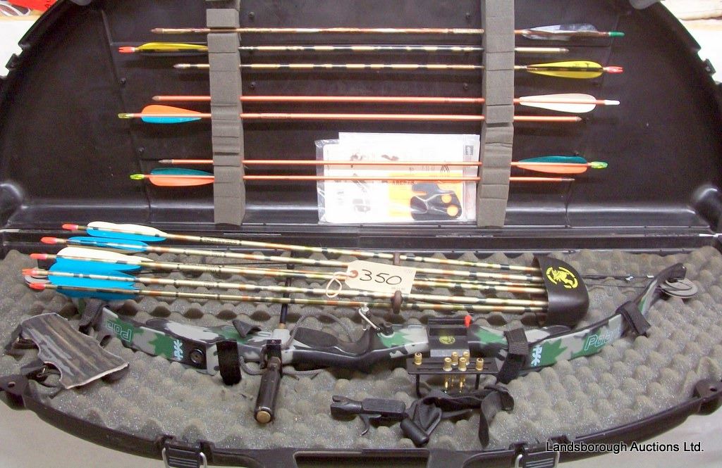 13 BOLTS, QUIVER, ARMGUARD, RELEASE, SIGHT, CASE.