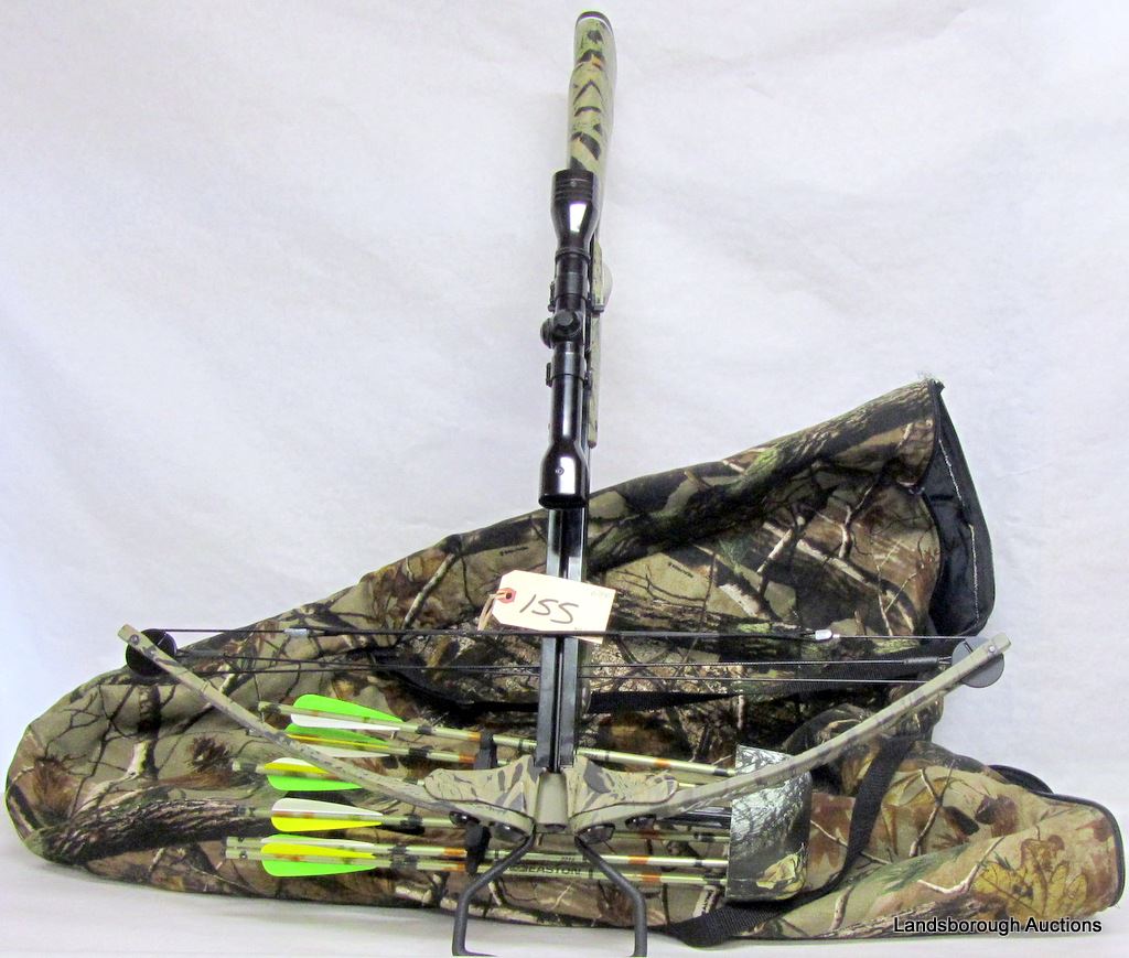 COMES WITH SIX BOLTS, 4X REDFIELD SCOPE, SOFT CARRY CASE, QUIVER.