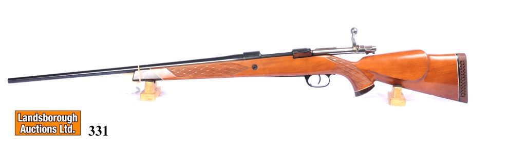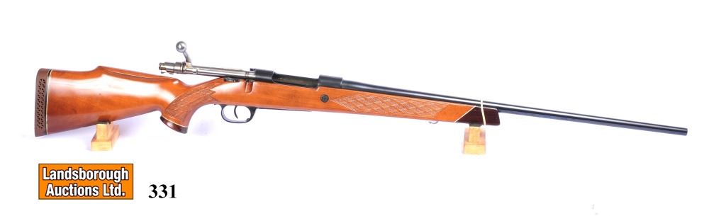 Non-restricted, bolt action, 7mm rem mag, 24" barrel, SN Y 2904, wood is very good, bluing is very good, bore is excellent, missing extractor and no sling swivel studs