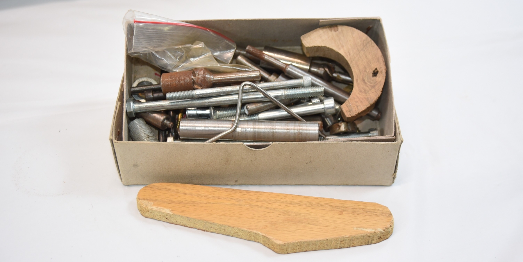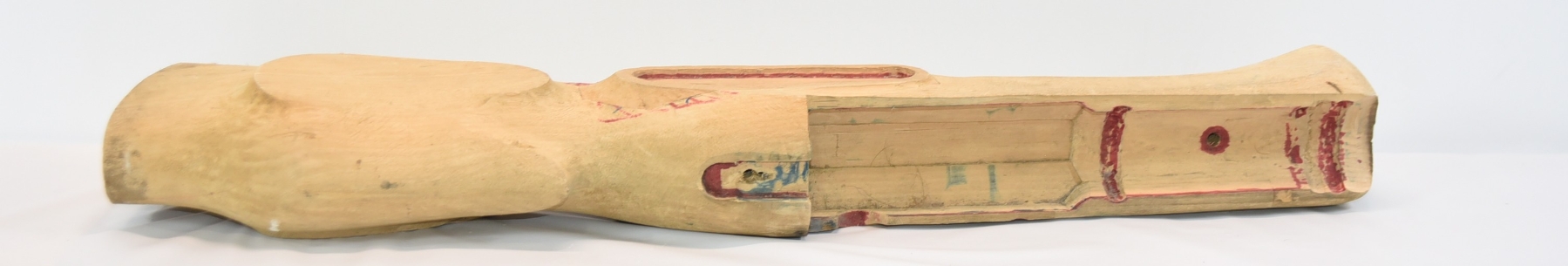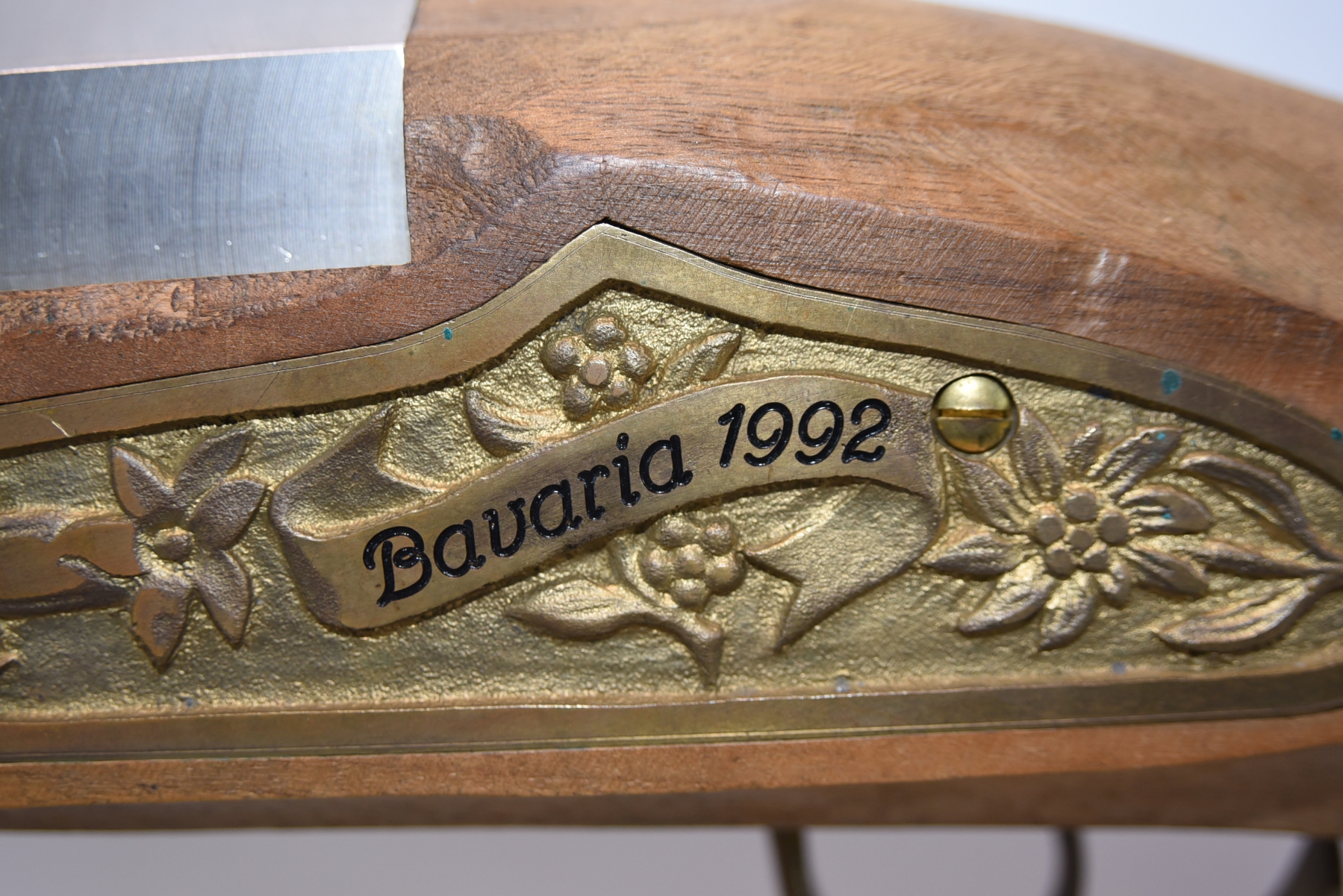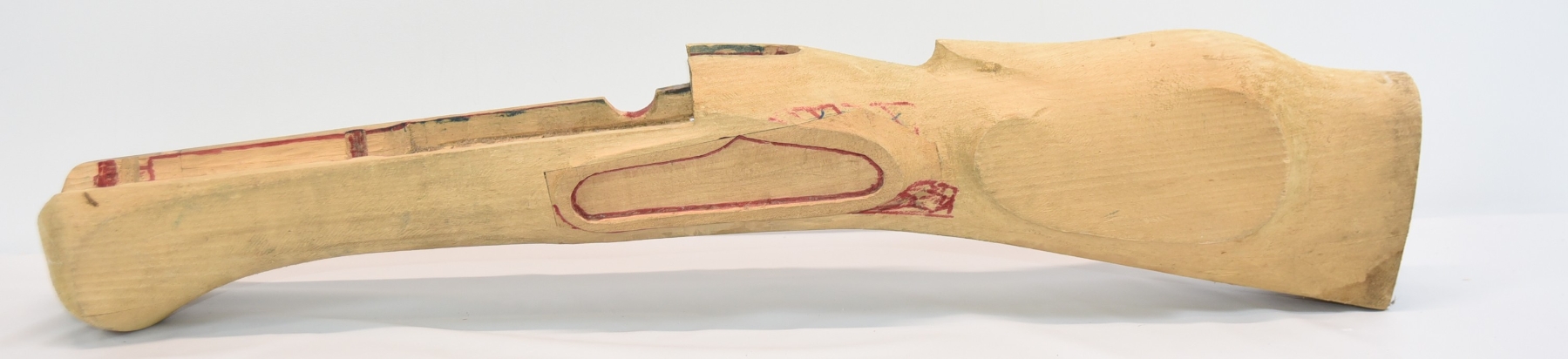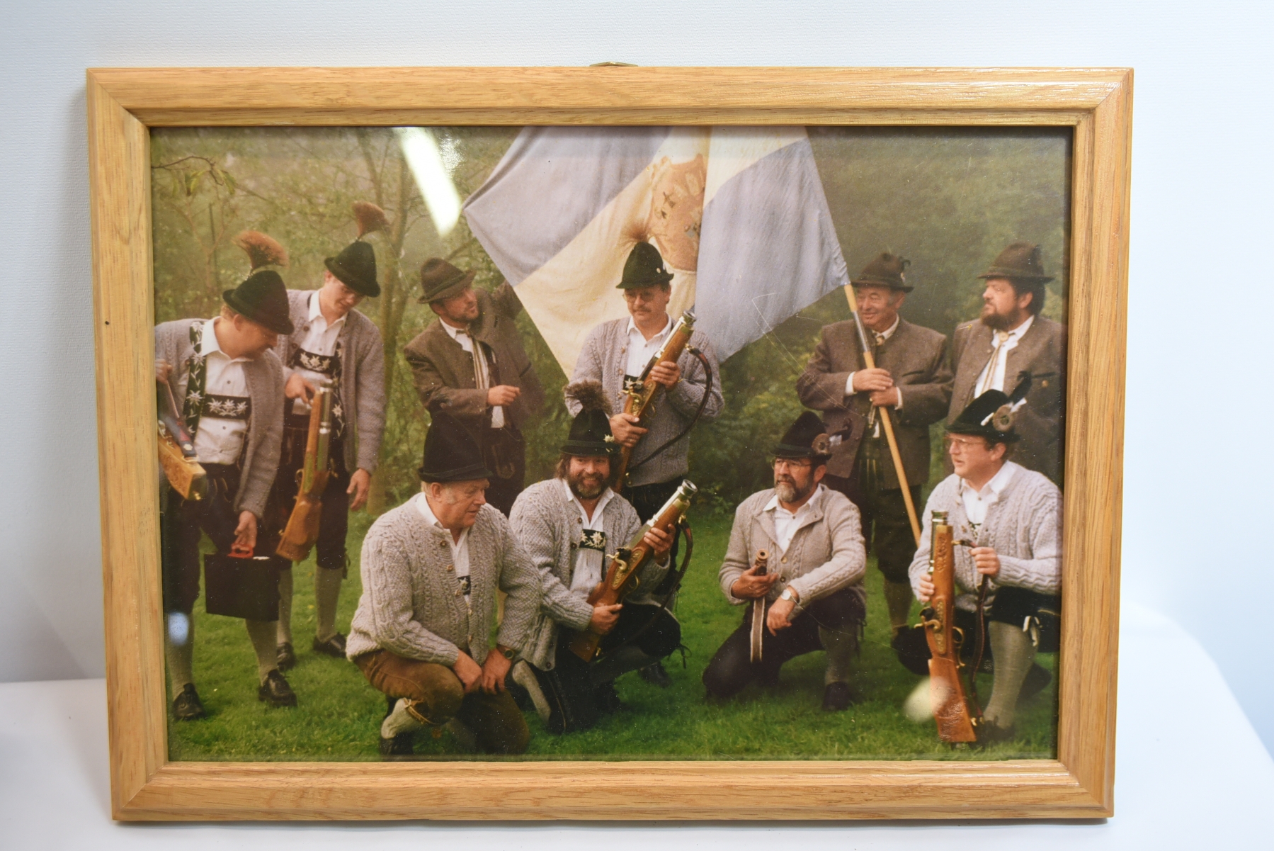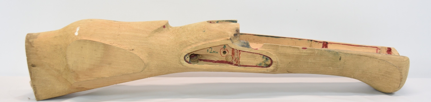 Item comes with a bag of confetti, spare unfinished stock, pictures of events in Europe at events, corks, leather bag with corks, 3 containers of percussion caps (unknown quantity), wooden mallet, push rod, spare brass butt plate, side plate, forearm cap, two boxes of spares, news clippings (German), photos.