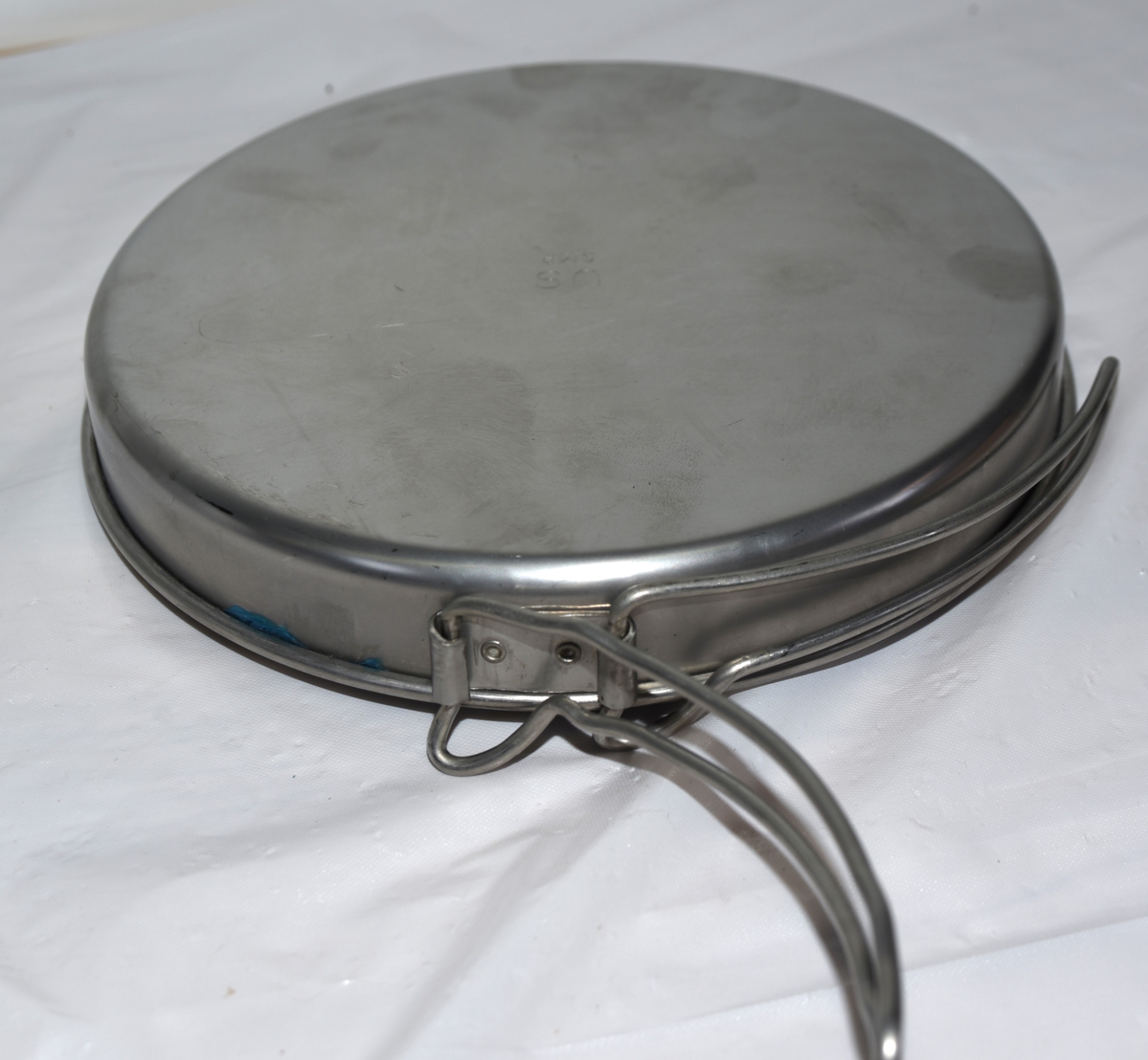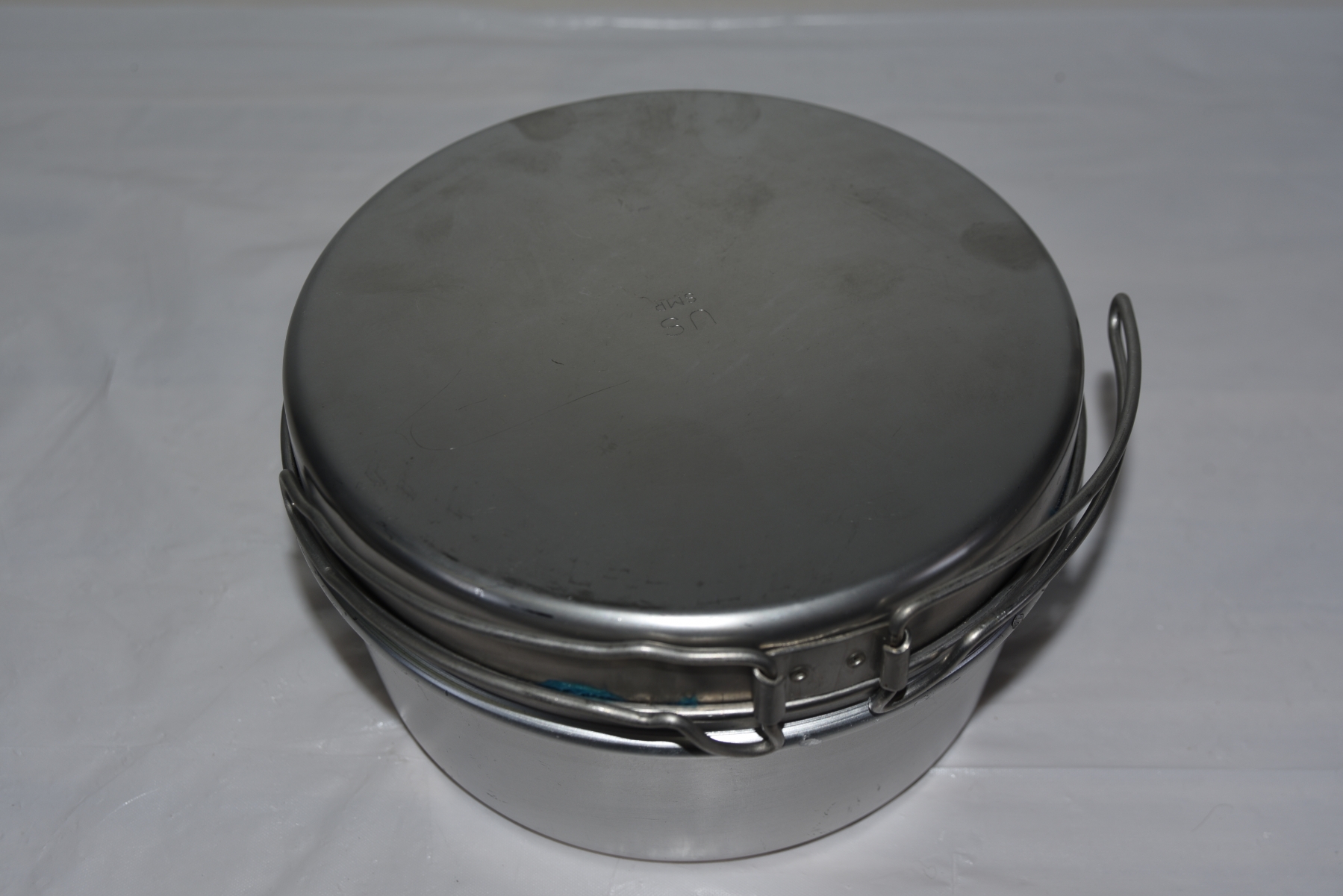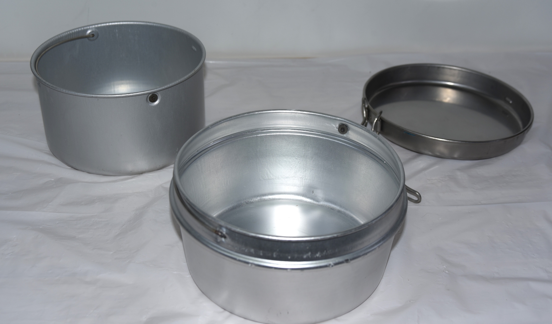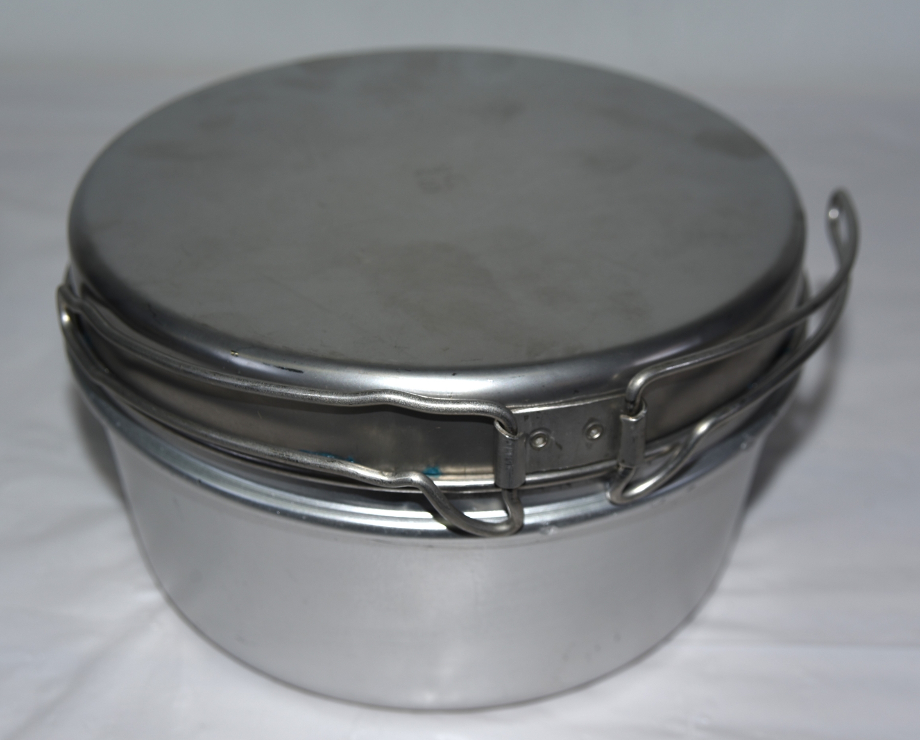 Portable stainless steel camping pot or Billy tin- designed for cooking over a fire or a stove