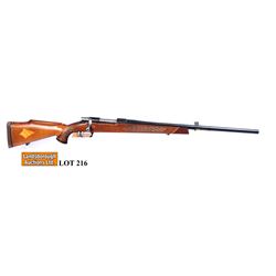 Non-restricted,mauser bolt action, 6mm rem., 24" barrel, SN 9988, wood is good, bluing is excellent, bore is excellent, gun has a custom mon...