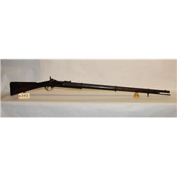 Antique, single shot, 577 Snider, 19" barrel, SN none. Wood has numerous dents and marks, bluing is brown, bore pitted, rifling prominent.