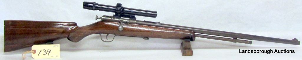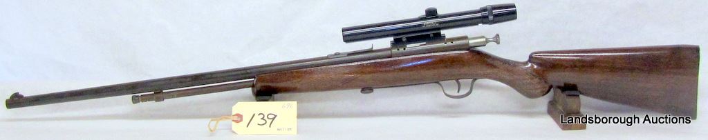 NON-RESTRICTED, BOLT ACTION, 22 CAL, 23 1/2" BARREL, SN NONE. WOOD IS REFINISHED, BLUING IS BROWN, BORE GOOD. COMES WITH BUSHNELL 4X SCOPE.