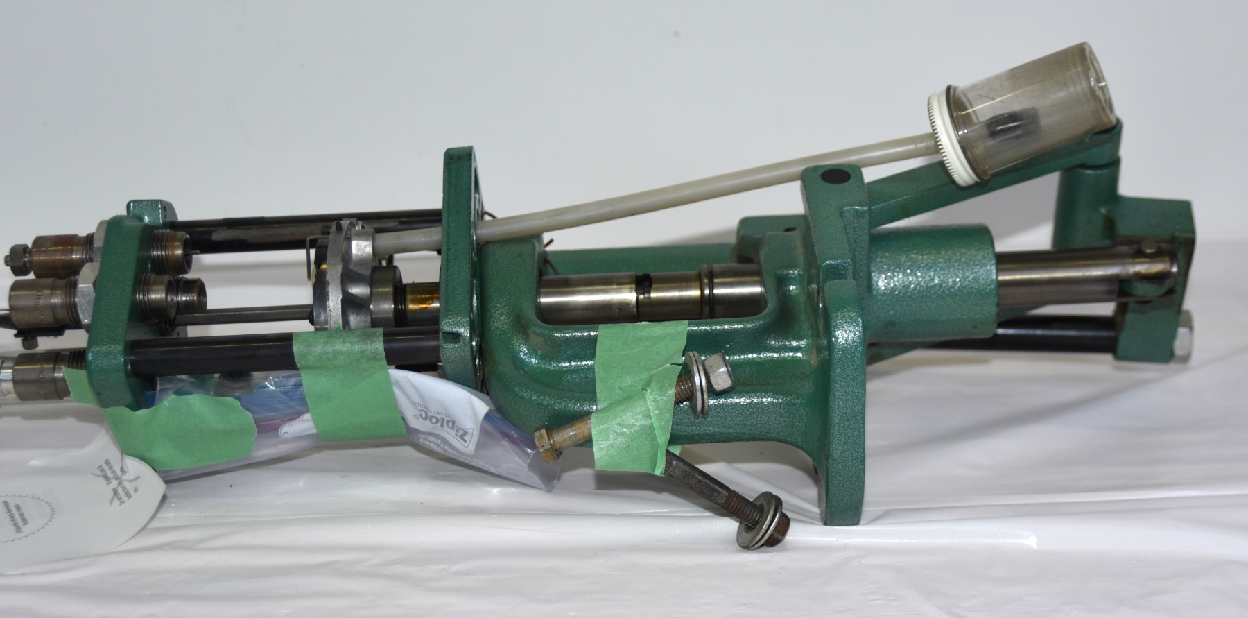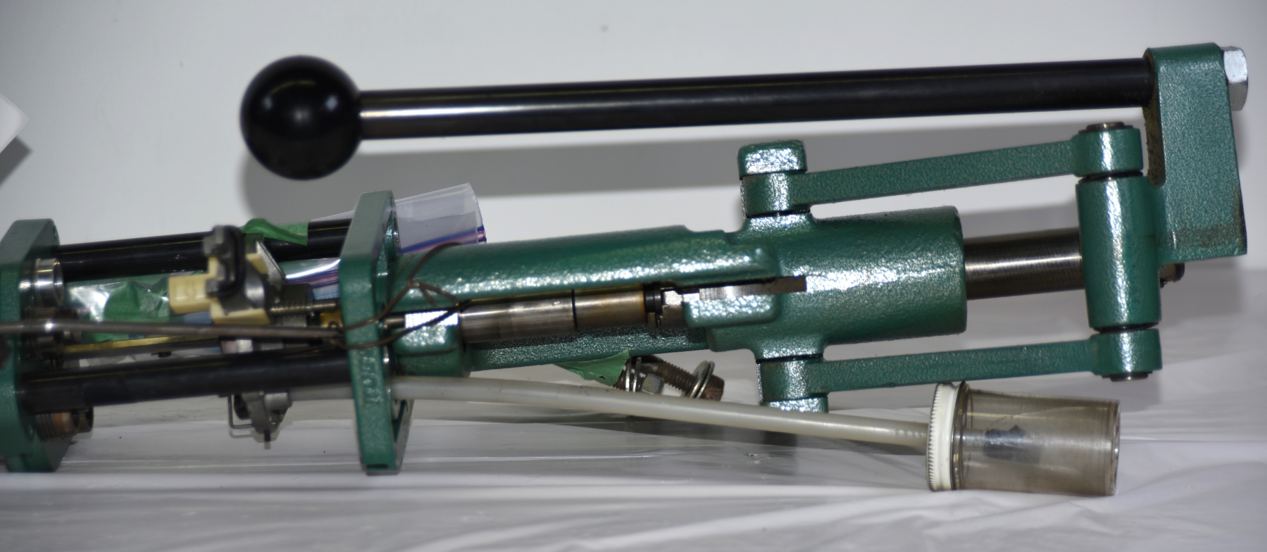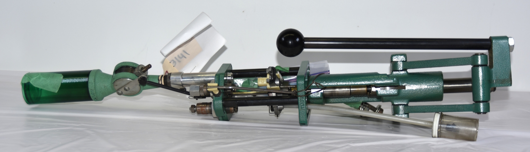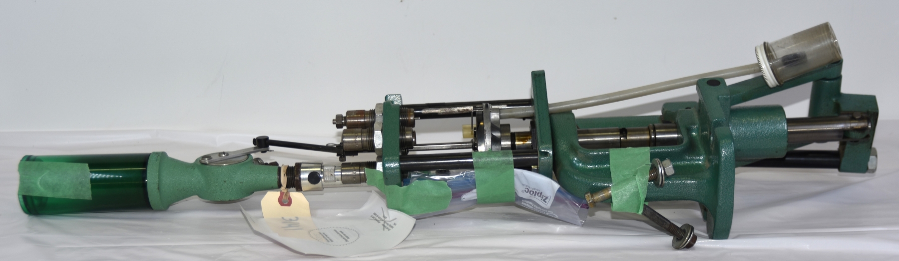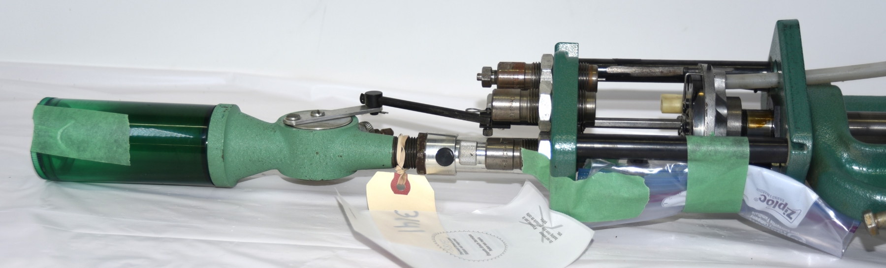 Item has .45ACP Dies, Uniflo Powder dispenser (powder container is cracked/chipped).