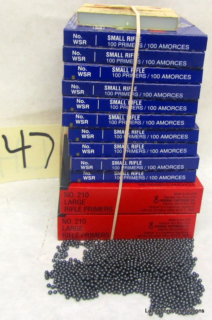 LOT WILL BE COSTLY TO SHIP. 11KG OF 7 1/2 LEAD PELLETS, 90 CCI 200 LARGE RIFLE PRIMERS, 980 WINCHESTER SMALL RIFLE PRIMERS, AND 181 FEDERAL LARGE RIFLE PRIMERS