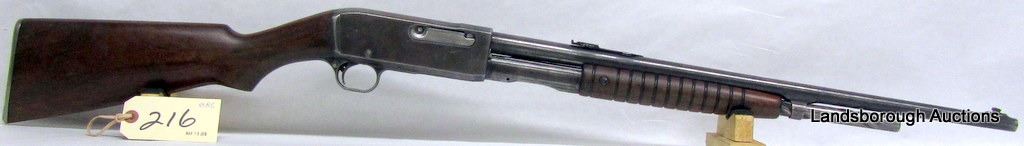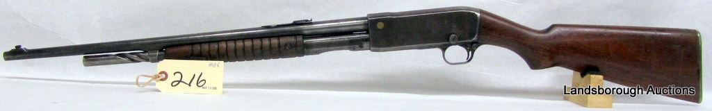 NON-RESTRICTED, PUMP ACTION, 30 REM, 22" BARREL, SN C8078. WOOD HAS A FEW MARKS, BLUING IS WORN AND GREY, BORE GOOD.