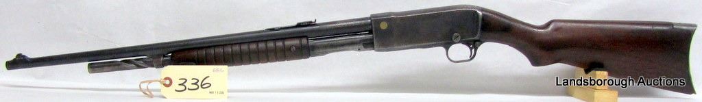 NON-RESTRICTED, PUMP ACTION, 25 REM, 22" BARREL, SN C16082. WOOD HAS CRACKS BEHIND THE RECEIVER, BLUING TURNING BROWN, BORE GOOD.