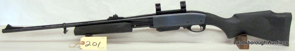 NON-RESTRICTED, PUMP ACTION, 270 WIN, 22" BARREL, SN B8575513. SYNTHETIC STOCK HAS A COUPLOE MARKS, BLUING SCRATCHED ON RECEIVER, BORE VERY GOOD. COMES WITH TWO EXTRA MAGS AND ORIGINAL WOOD.