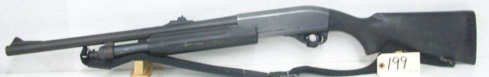 NON-RESTRICTED, PUMP ACTION, 12 GA. 2 3/4" OR 3", 20" RIFLED SLUG BARREL, SN# A382955M, SYNTHETIC WITH SOME HANDLING MARKS, BLUING IS MATTE FINISH IN GOOD CONDITION, BORE IS EXCELLENT, COMES WITH A SLING,SAFETY IS MALFUCTIONING