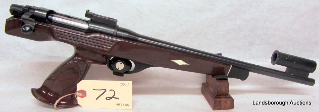 RESTRICTED, BOLT ACTION, 7MM BR REM, 381MM BARREL, SN B7519037. PLASTIC STOCK HAS A COUPLE SCRATCHES, BLUING GOOD EXCEPT FOR A COUPLE MARKS ON THE FRONT SIGHT HOOD, BORE VERY GOOD. COMES WITH SOFT CASE.