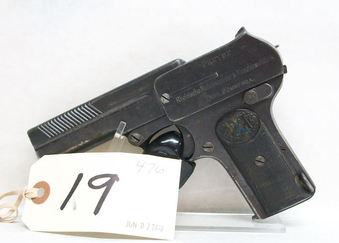 PROHIBITED, SEMI AUTO, 7.65MM, 93MM BARREL, SN 0217169. GRIPS WORN AND MARKED, BLUING PITTED ALL OVER, BORE GOOD.
