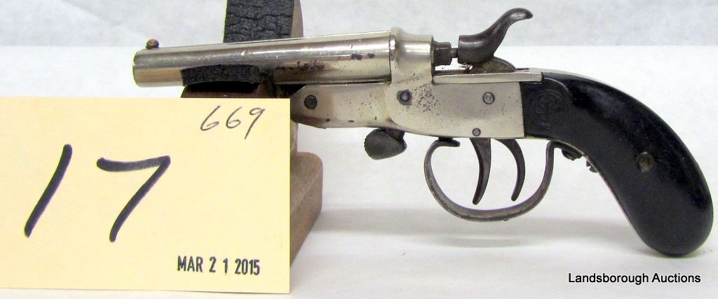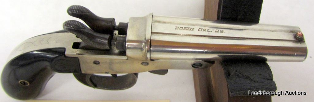 PROHIBITED, MULTI BARREL, 22 LR, 70MM BARREL, SN E231464. WOOD GRIPS ARE MARKED, NICKEL PLATING HAS A FEW PIT MARKS, BORES PITTED.